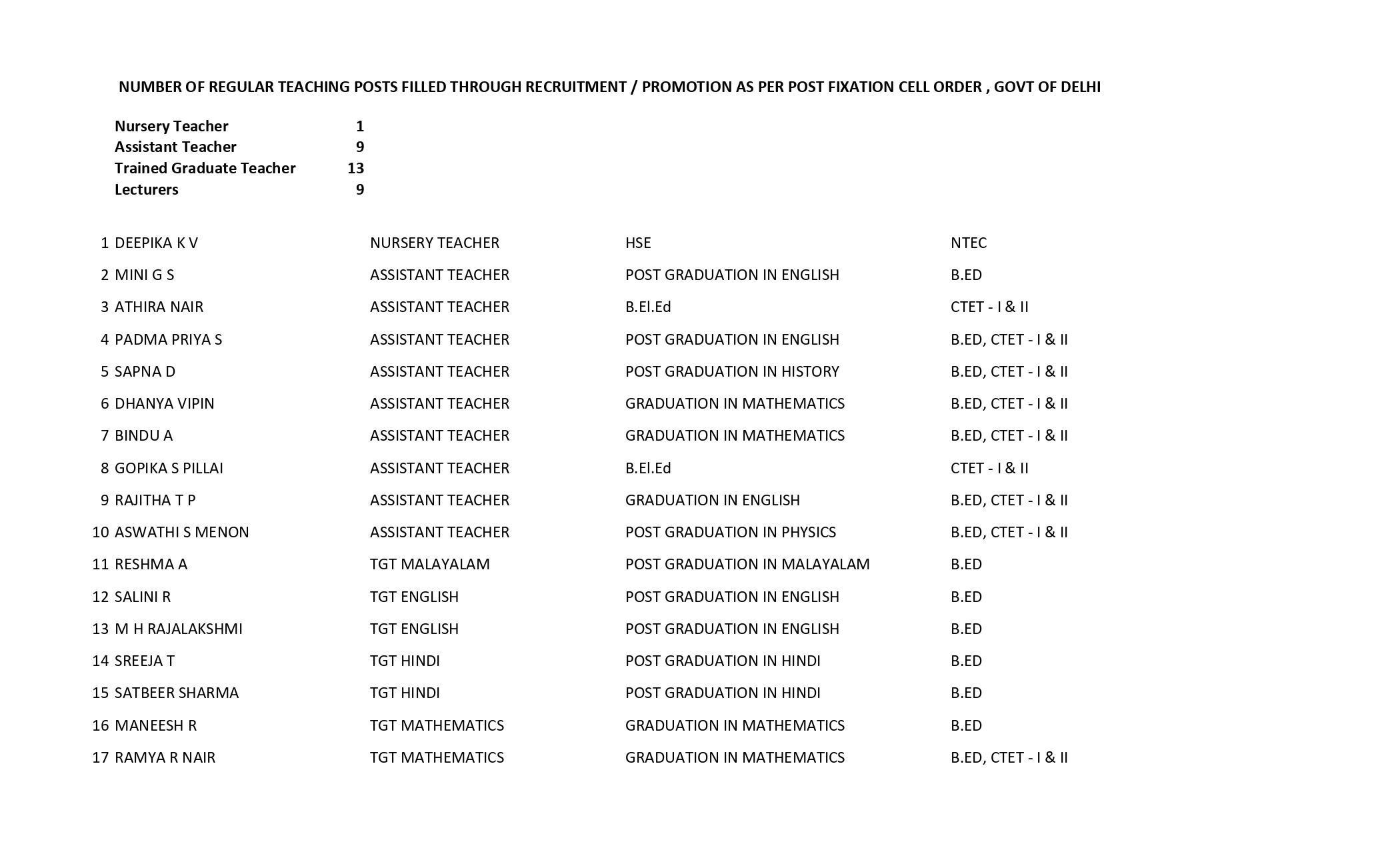 All vacancies will be published in Employment News and National Dailies as per the notifications from Post Fixation Cell, Department of Education, GNCTD. Details of posts will be published in this site also.